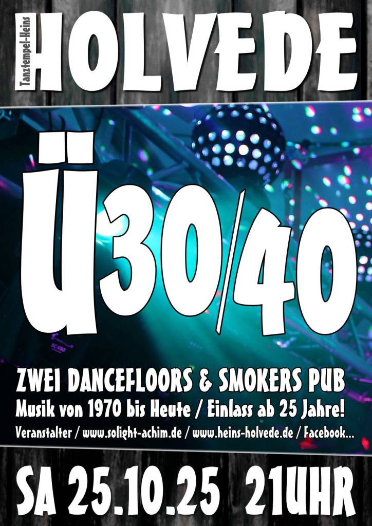 25.10.2025 21:00 Ü30/40 Holvede Zwei Dancefloors & Smokers PubMusik von 1970 bis Heute Eintrittspreis(e):AK: 12 € Veranstaltungsort:Tanztempel-Heins Holvede